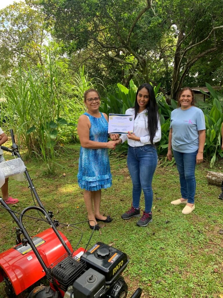 Por su parte, la presidenta de AMREB, Gloria Esther Jaramillo Muñoz, agradeció el apoyo recibido y destacó que la donación contribuirá a mejorar las labores agrícolas que desarrollan las mujeres de la comunidad.